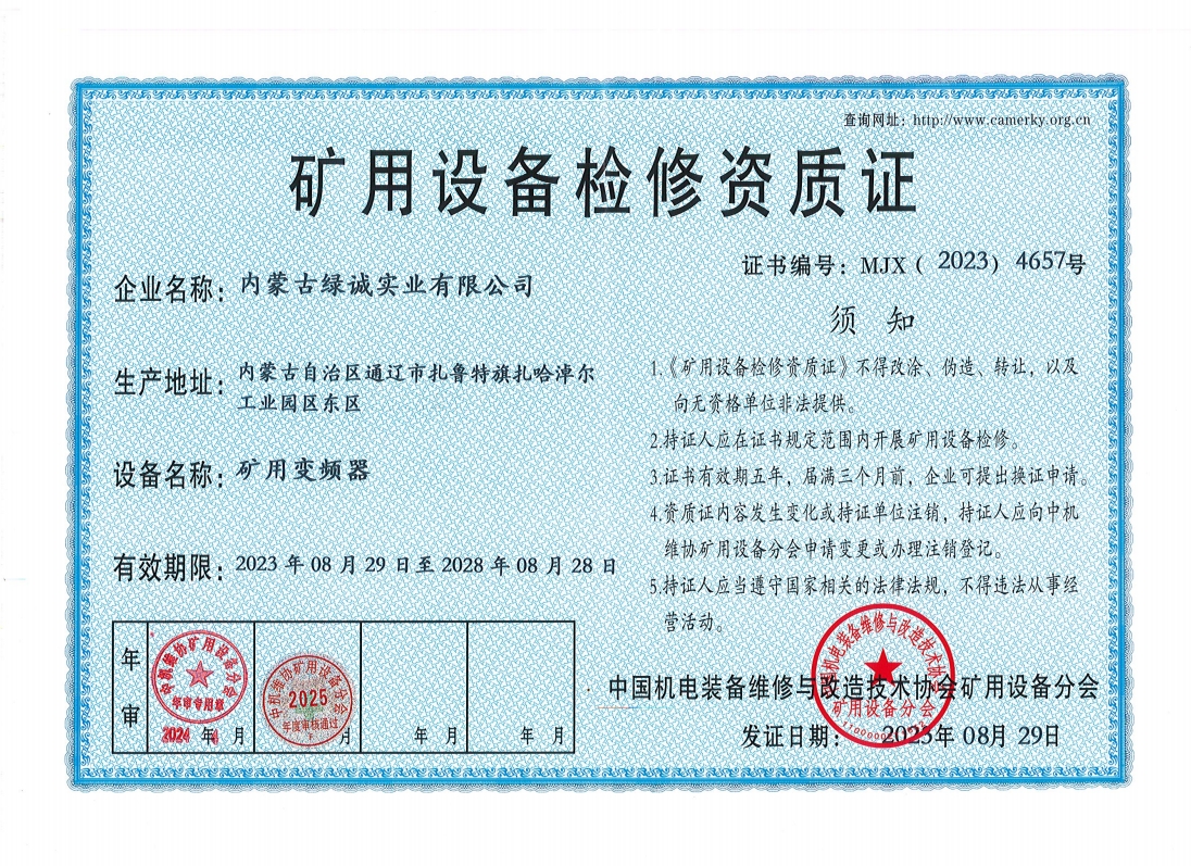2018年我公司通過中國機電裝備維修與改造技術協會礦用設備分會審核并取得了9項礦用設備檢修資質證書。公司本著“誠信為本 質量為先 全心全意為客戶 ”的服務理念,圓滿完成各個廠礦的機械維修及配套服務,期待與您共同合作。